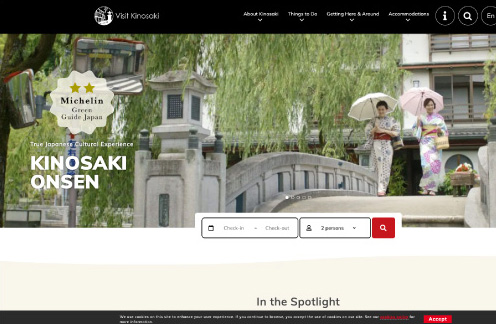 豊岡市とDMOが運営するインバウンド特化の観光情報サイトです。充実した観光コンテンツを掲載するだけでなく、地域OTA(宿泊予約)機能も備えています。