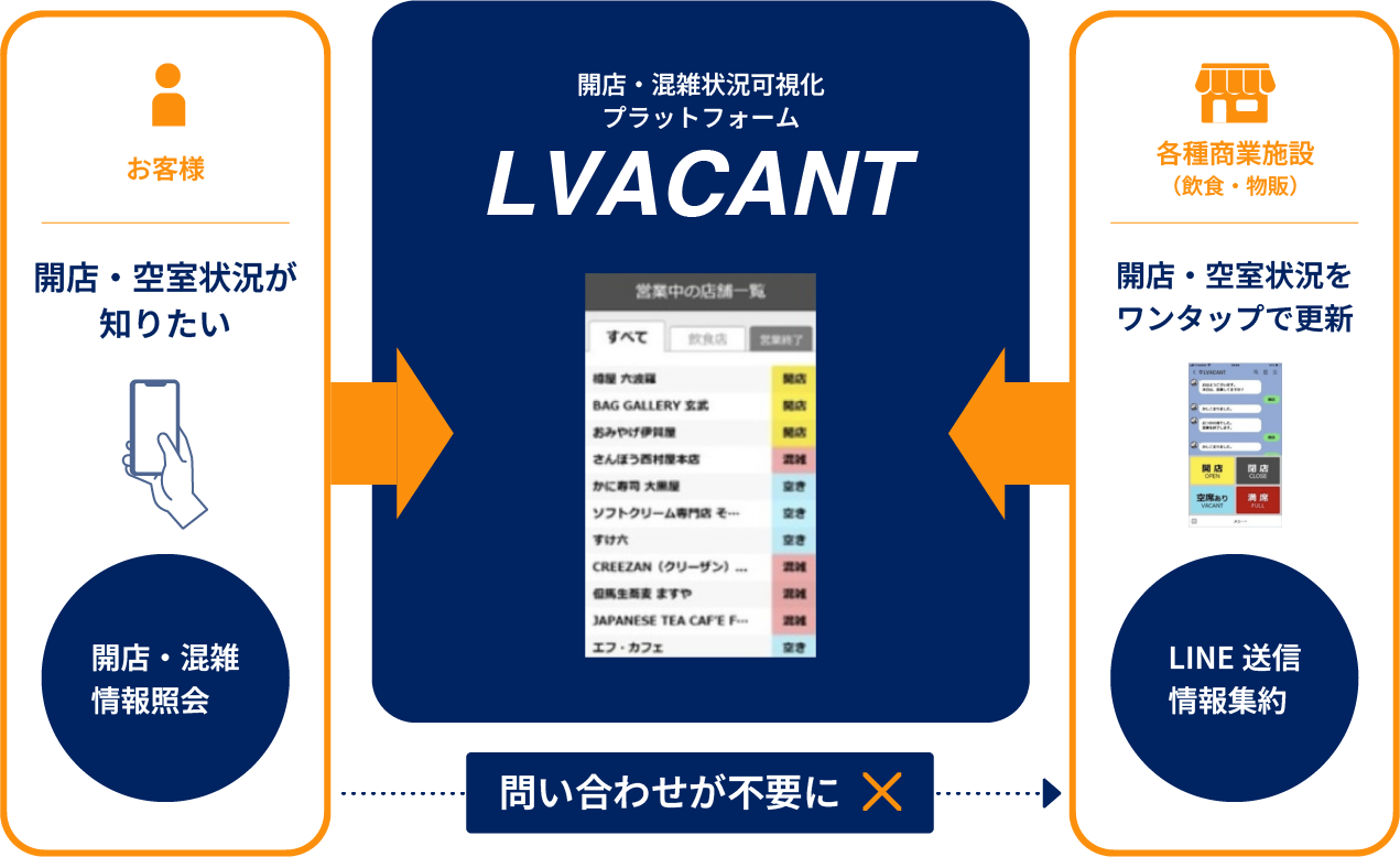 商業施設の営業・混雑状況を各種WEBサイトやLINE公式アカウントを通して顧客へ提供する
